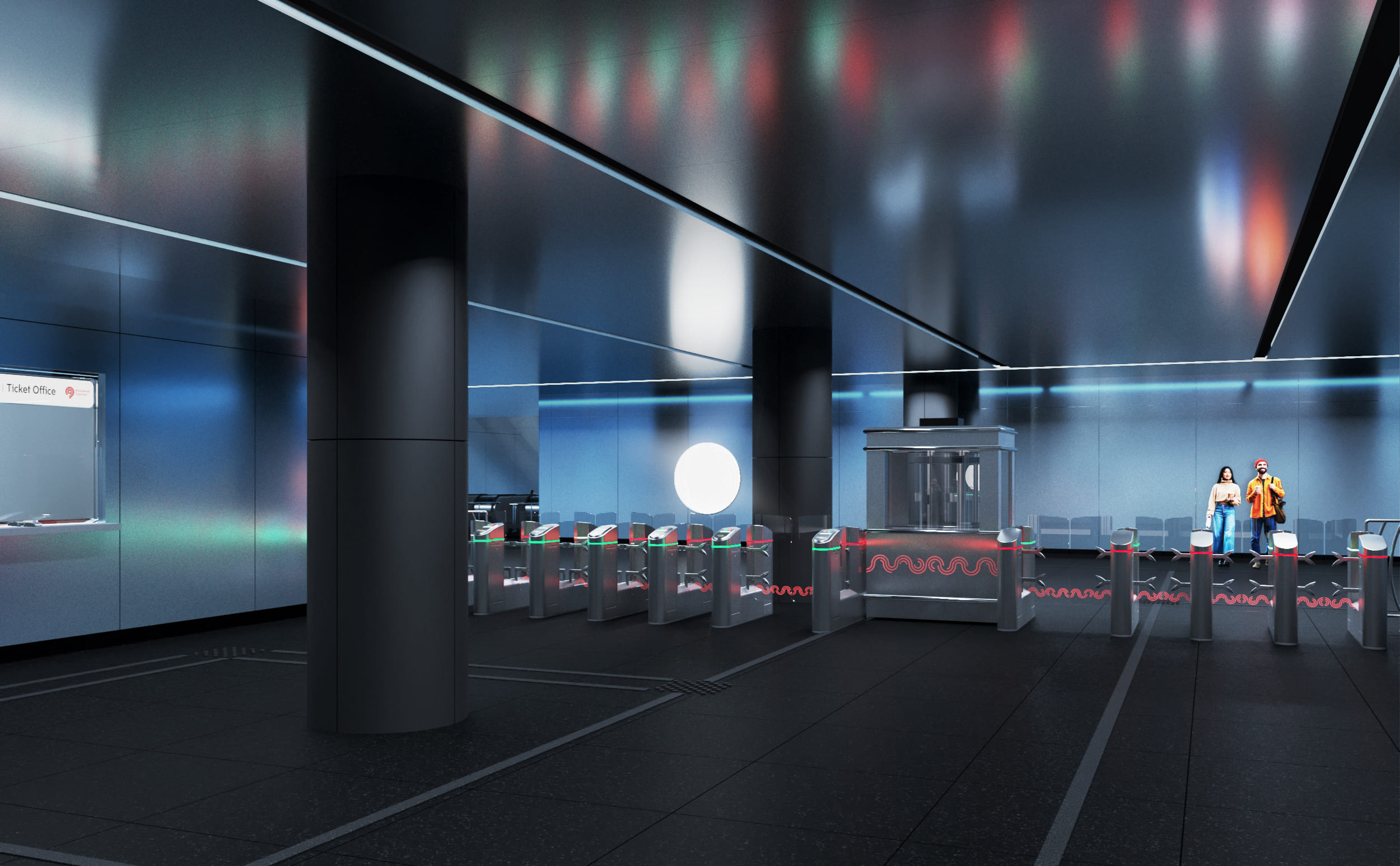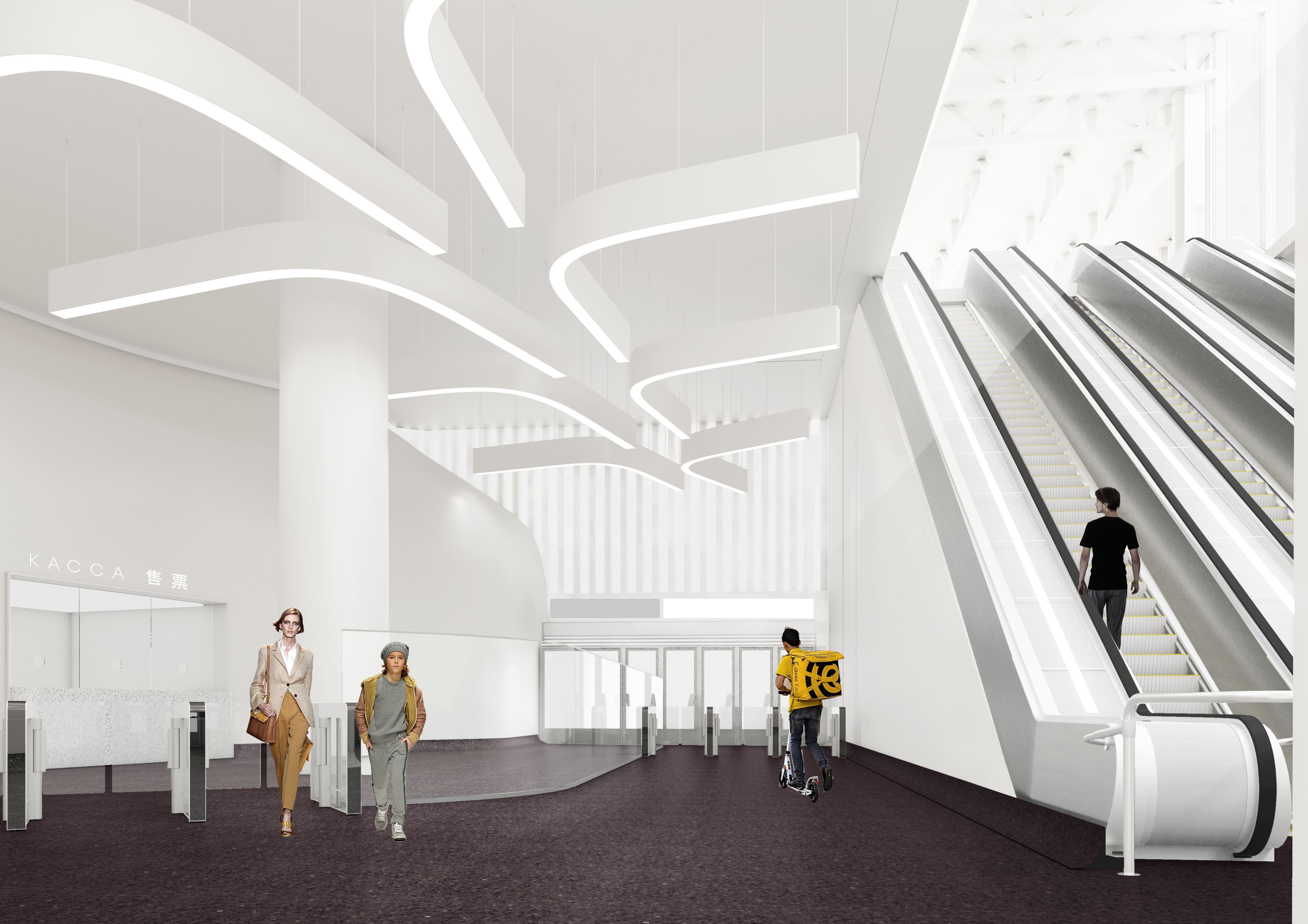 We create the station white and spacious, using minimalist materials and monochrome colors.