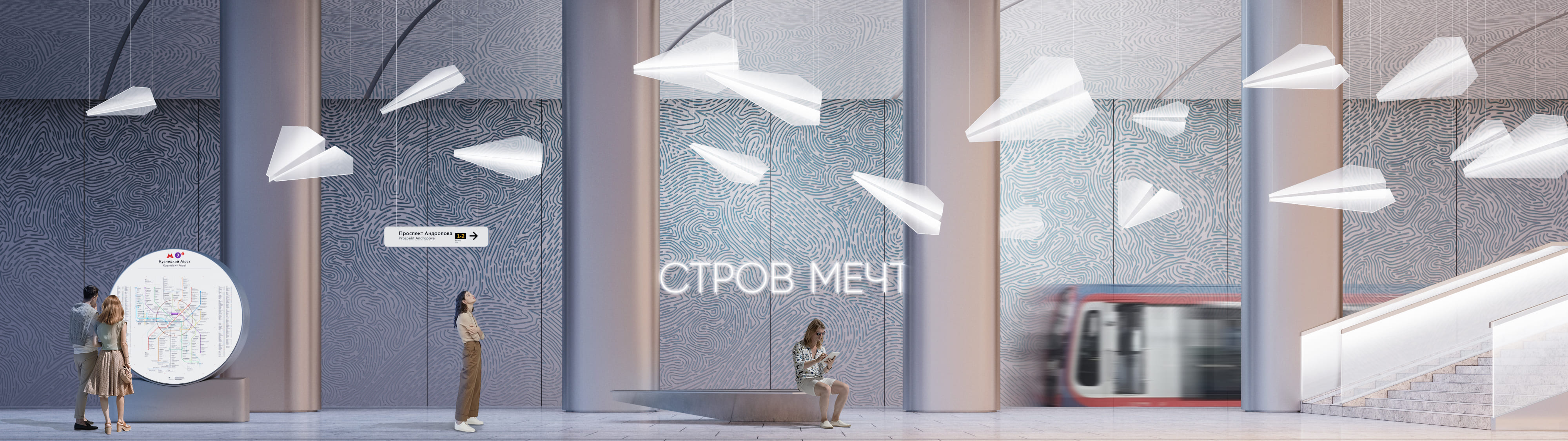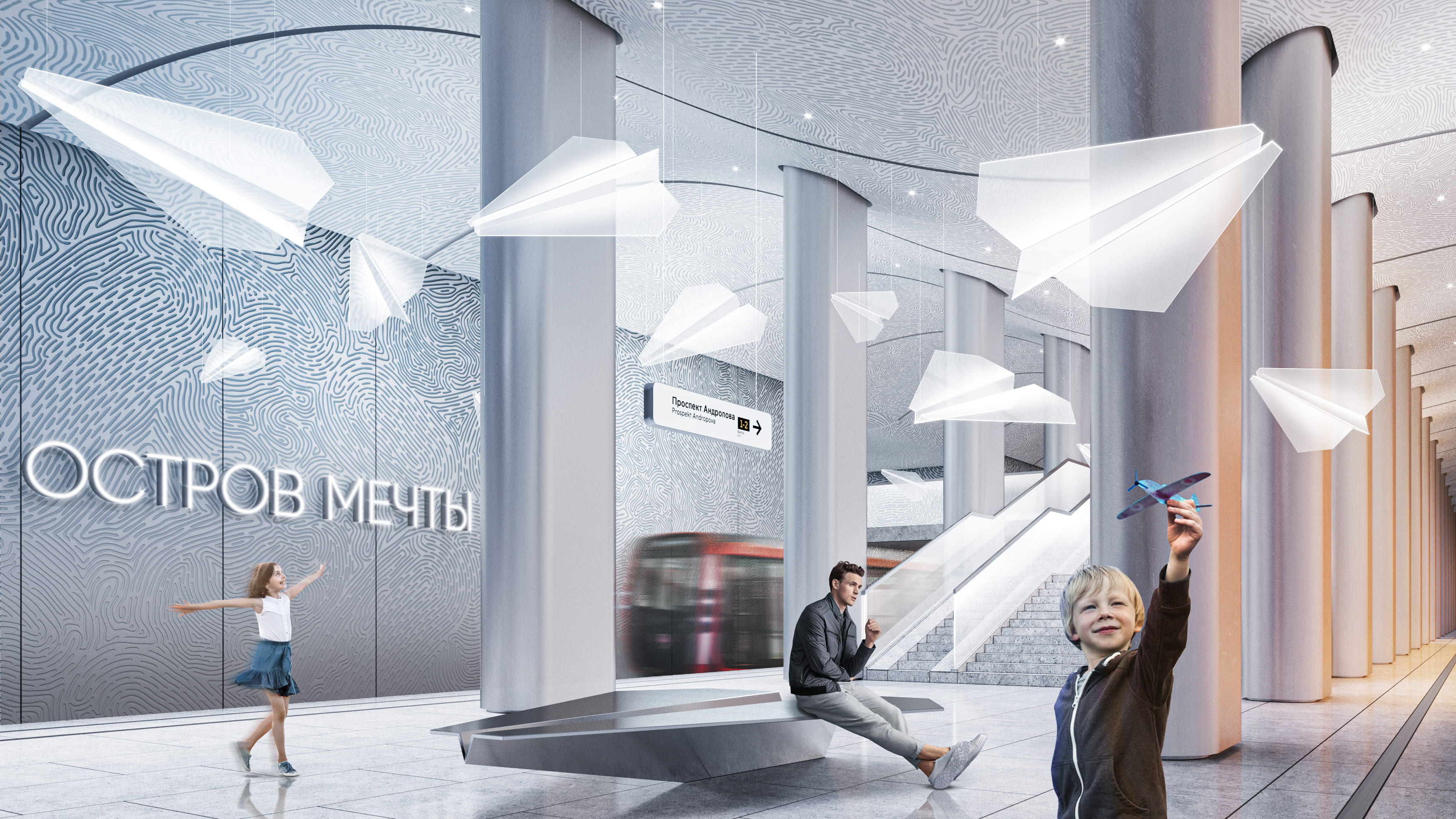 One of the brightest images of dream and symbols of childhood is a paper airplane. When children launches the plane into the sky-it is a moment of happiness, a sinking heart, a moment when a dream comes true. And one of the main feelings of childhood is lightness and carelessness. These images formed the basis for the idea of the Ostrov Mechty station.