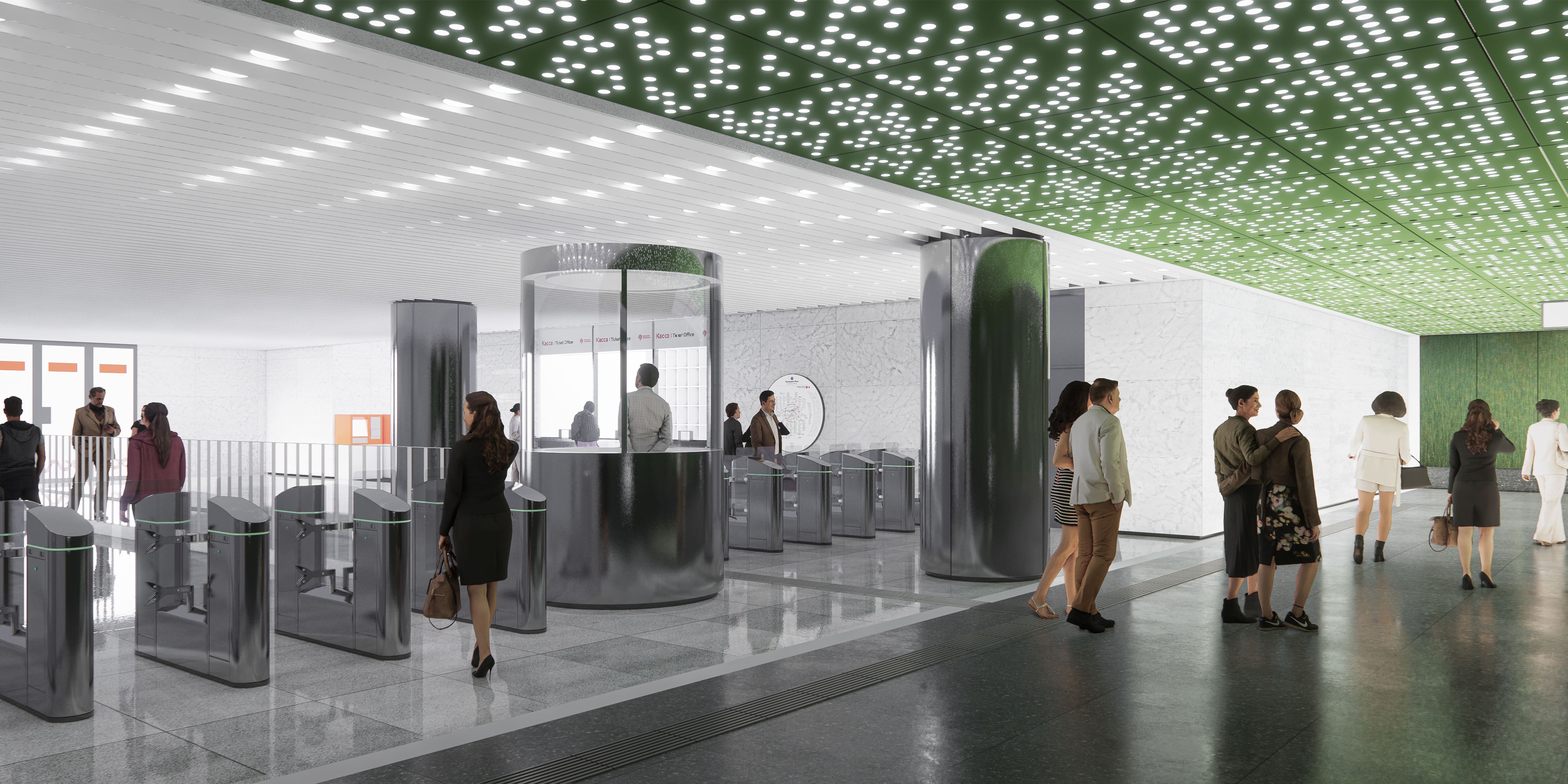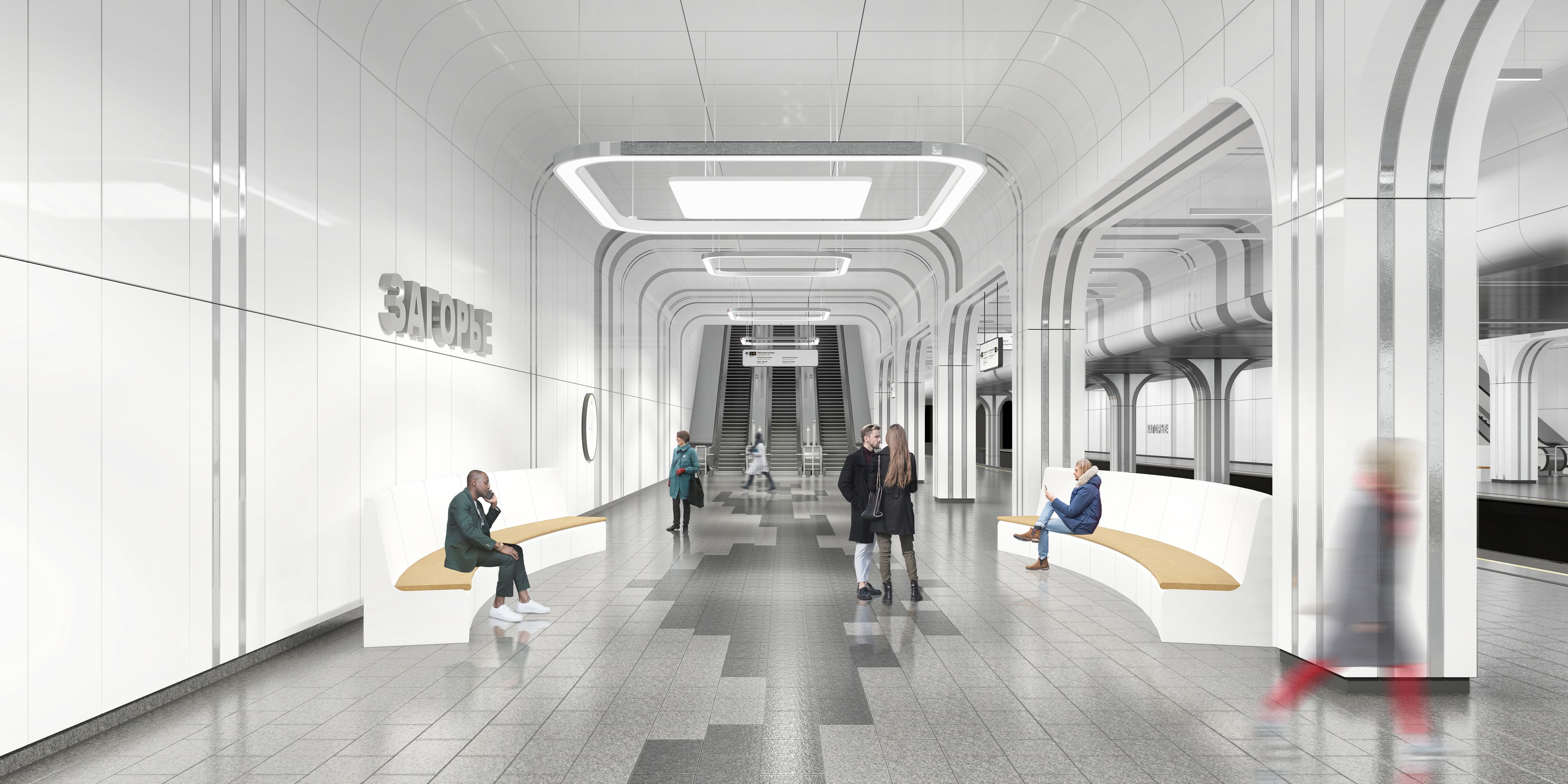 Discovering the optimal architectural and artistic design for the passenger zones and entrance halls of Ostrov Mechty and Zagorye stations.
